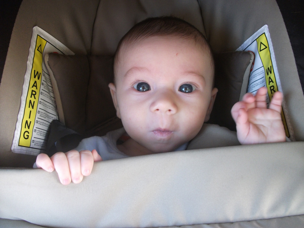 Aún no puede tomar alimentos, empezará a partir del 5º mes con frutas y cereales sin gluten, el tema es que como no toma otra leche que no sea la mía, cuando introduzca los cereales tendré que extraerme leche, porque el peque sabe diferenciar perfectamente cuál es la mía y cuáles las otras, (pone cara de asco sea la marca que sea).