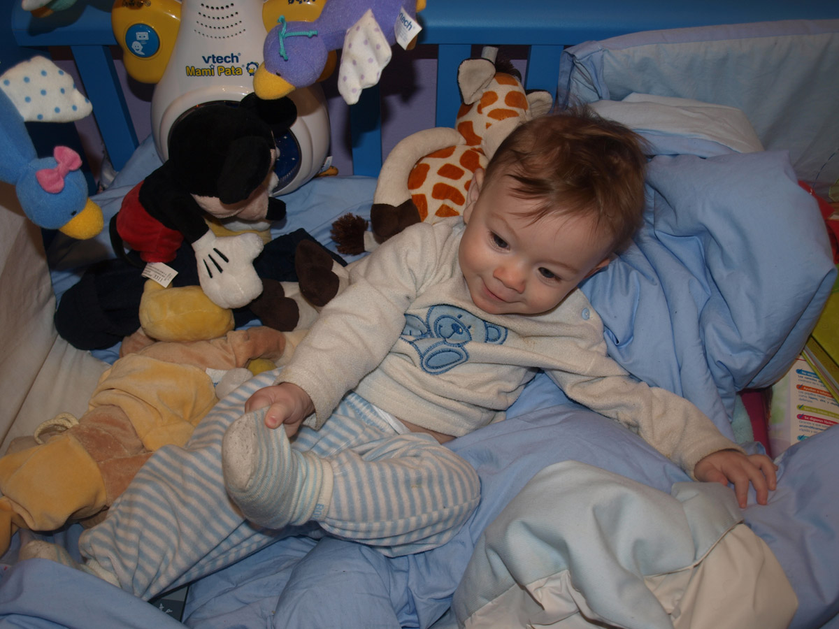 Y las cosas difíciles no son muchas; una es cambiarlo, porque se da vuelta continuamente y no deja que le pongas el pañal, ¡no para quieto ni medio segundo! y que duerma las siestas algunos días, porque se cae de sueño pero no sabe que tiene que dormir y se pone insoportable; da mil vueltas hasta que se cae de sueño y se duerme rendido, pero no sin antes volverme loca con berrinches y gritos, que ya tiene su carácter el hombrecito…