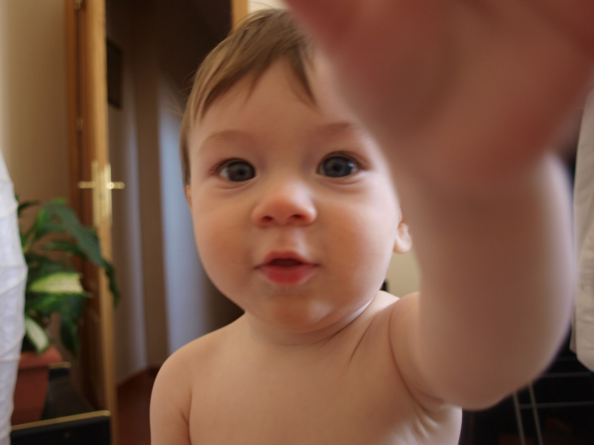 ¡Y ya se acerca el primer año! es increíble como pasa el tiempo, ya está tan grande…Y quiere hablar y hacerse entender; ya dice varias palabras con sentido: papá, mamá, nene, guapa, caca; sabe hacer los sonidos de algunos animales: cua cua, (pato) y muuuu, (vaca), y sólo es cuestión de enseñarle la palabra relacionándola con algo que le guste mucho y ya lo aprende…
