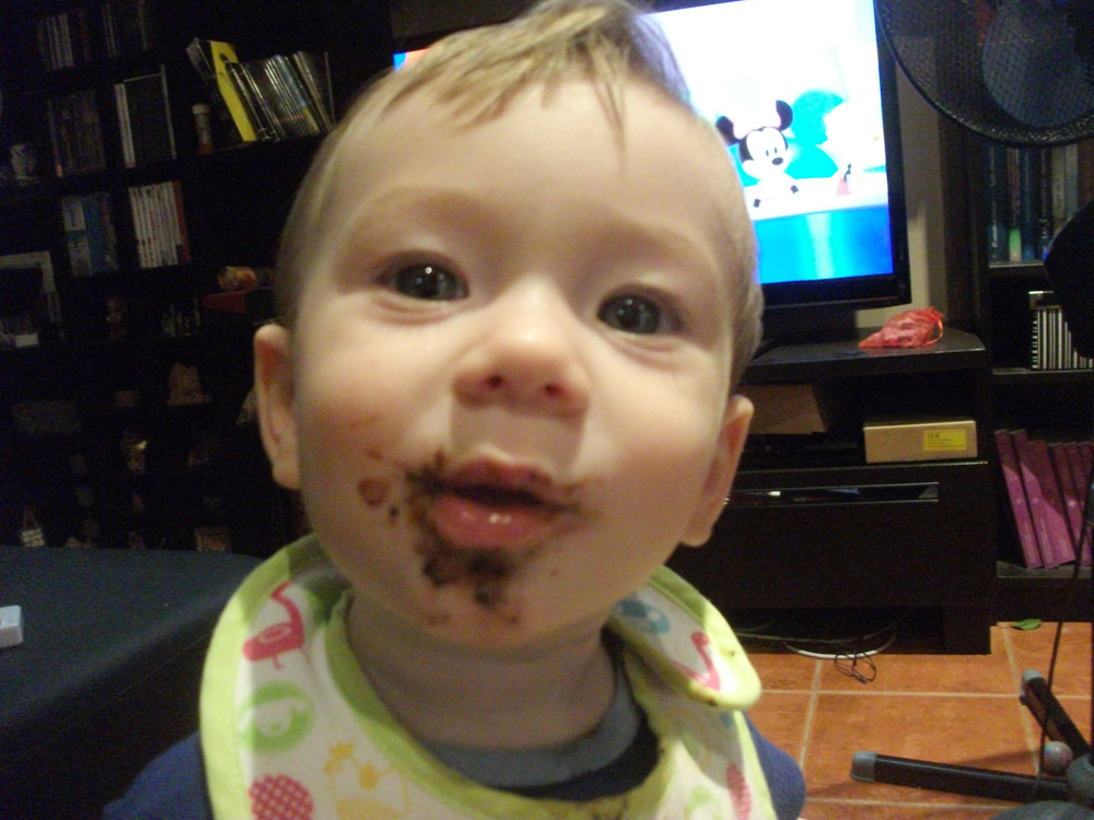 Bueno, luego les cuento más; les dejo una foto de esta mañana que está súper graciosa; estaba yo tomando mi desayuno de colacao y un par de galletas con chocolate, pero mi querido me robó una de las galletas, (yo le había dado 3 tipos de galletas de las de peques con cereales y todo eso), pero mi pichunchín es más listo, les tiró las galletas de bebé al perro y él se comió la de chocolate…