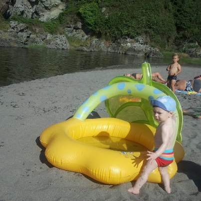 Le llevamos una piscinita hinchable y pusimos sus juguetes para la arena y el agua ahí y estaba encantado.