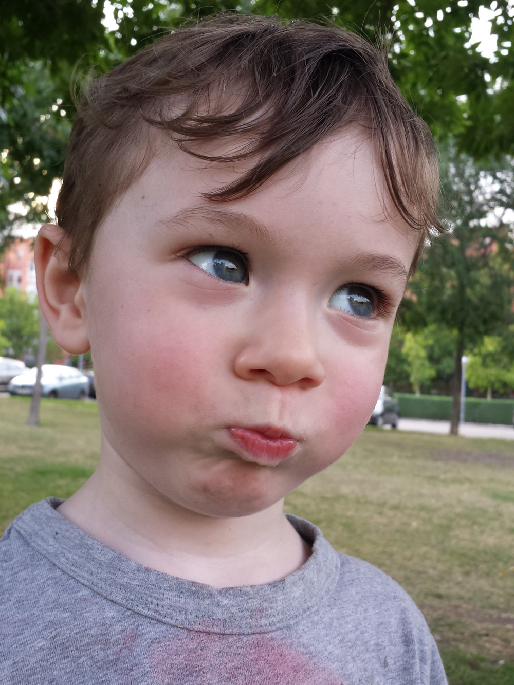 Y otra de las cosas dignas de comentar fue que estaba la directora preguntándole el nombre a Samu y encantada con los dos diciéndoles cosas bonitas y no va que a Samuel se le ocurre decirle toooodas las malas palabras que se sabe, como una gracia, no se con que fin, en argentino y en español, («a la mi…..a»; «la con….de la lora»; «la madre que te parió»); pues nada, que no le hizo ni gracia y muy seria preguntó quién le había enseñado esas cosas a lo que a Samu no le se ocurre mejor idea que decir «mamá». La directora, con una mirada inquisidora me dice: «seguro que las aprendió en la guardería, ¿a qué va a la guarde, mami? Y yo, con dolor en el alma porque hubiera deseado que no las haya aprendido de mí tuve que decir que no….¡Menudo hijo tengo! Con lo dulce que es siempre, con las miles de palabras bonitas que sabe decir, con lo comprador que es y lo listo y bueno…¿Justo tuvo que hacerme pasar semejante vergüenza? ¡jajajajajaja!!!!!