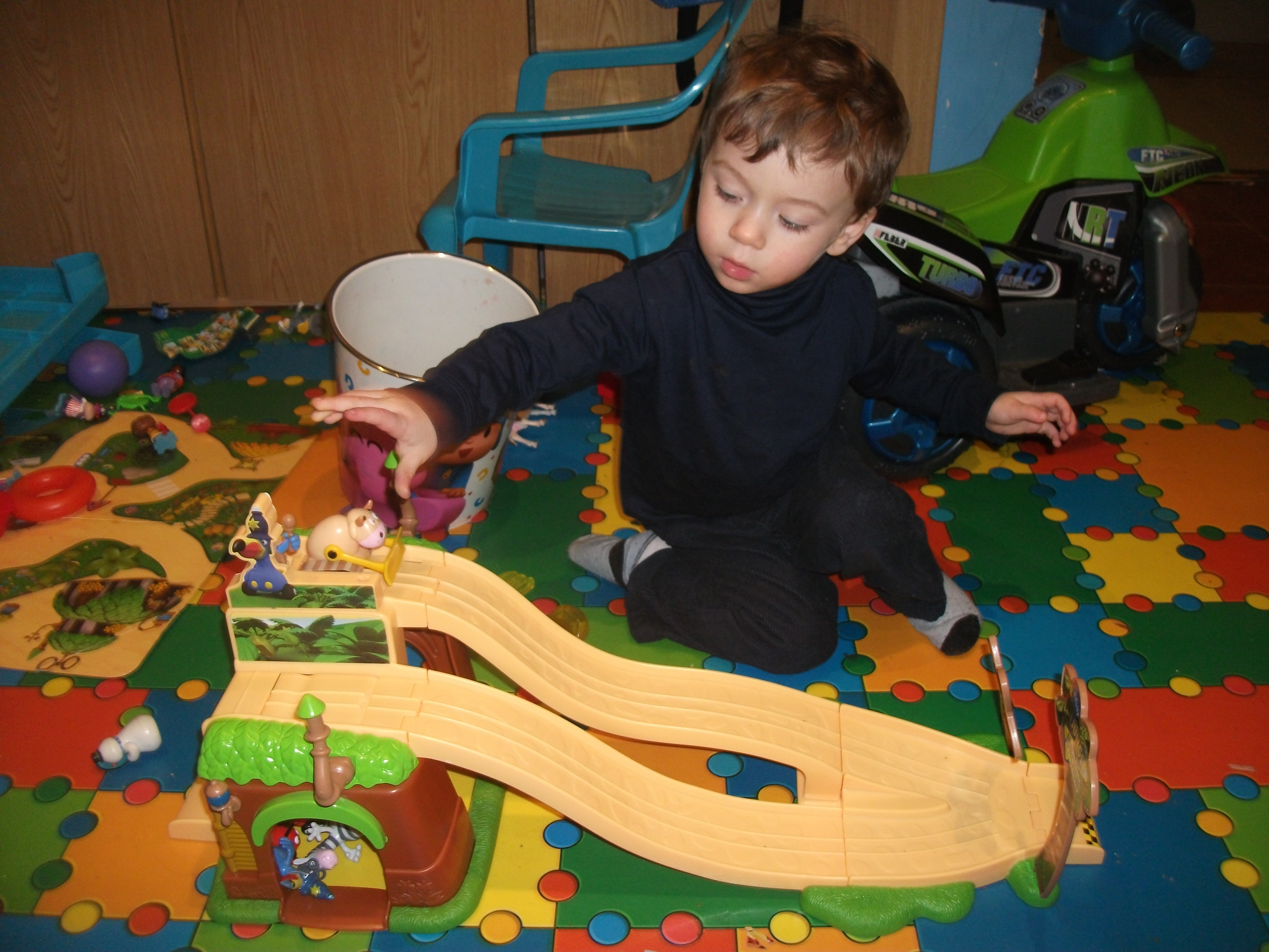 Está encantado y cada vez que va no se quiere marchar. Aunque está distinto Samu, más mayor, más independiente, juega a lo que él quiere con quien él quiere, presta sus juguetes cuando se le ocurre, (aunque al principio de cada situación es muy cauto y se pone a observar cada detalle y persona a distancia).