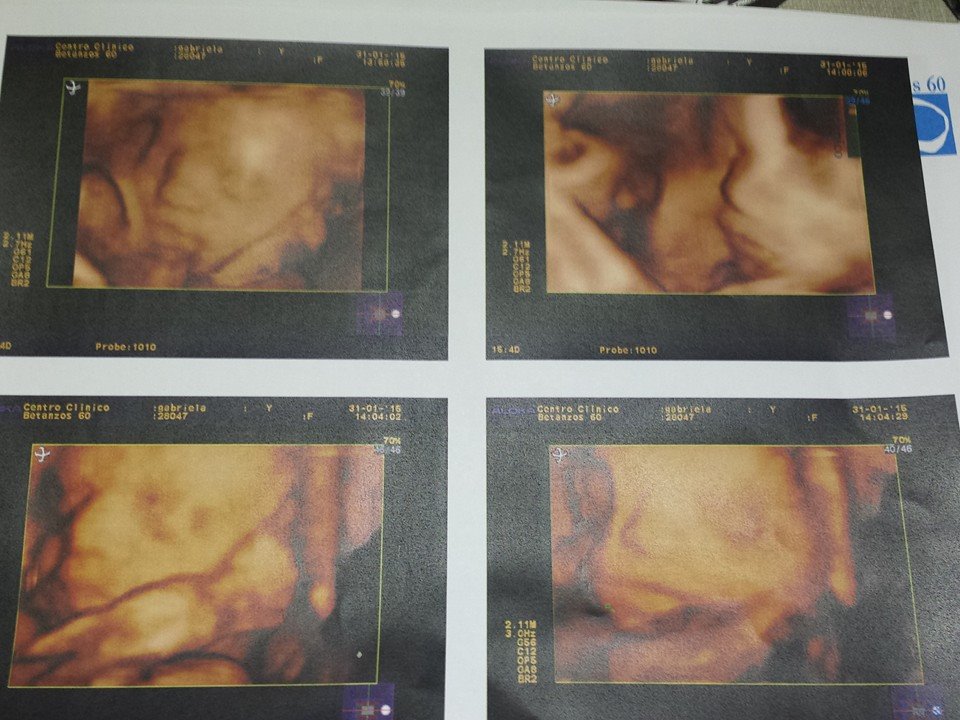 Tomás está fenomenal, ya pesa casi 1,900 kg y me he hecho la última eco 5d del paquete que teníamos. Lo hemos visto sonreír y sacar varias veces la lengua, aunque ya a esta altura el bebé está tan grande que suele pegarse a la placenta y no se puede ver tan nítido.